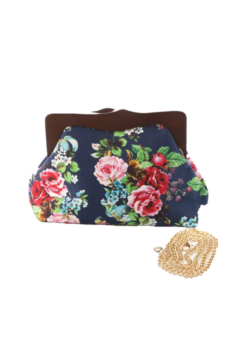 8401 Rose Bouquet Floral Wood Clutch Bag