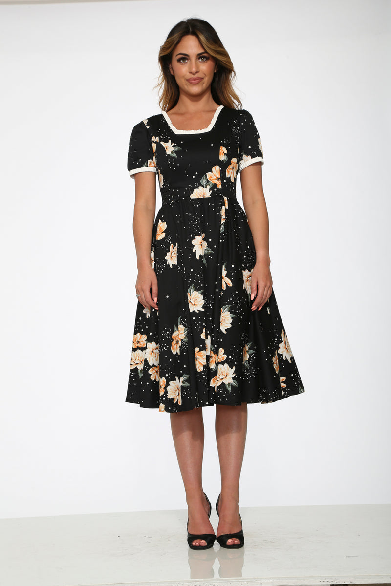 49371 Black Hot Pink Embroidered Poodle Swing Skirt