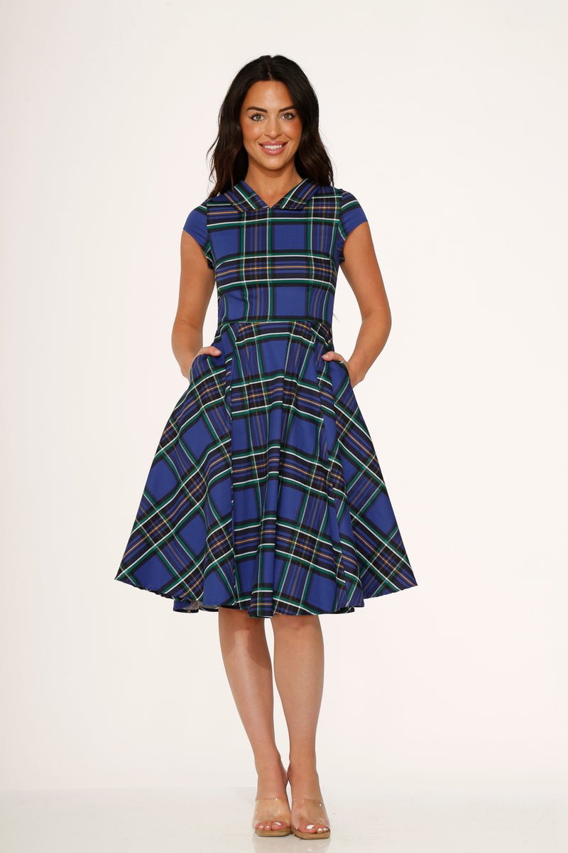 20040 Blue Hawaiian Palm Tree Print Swing Dress